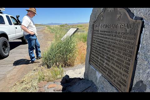 The altimeter was falling like a lead zeppelin as a stiff wind whipped over the top of the mountain, buffeting the side of my rig as I carefully navigated a hairpin switchback. To our left, the terrain disappeared into a precipitous abyss, and 1,500 feet below lay the desiccated and bleached expanse of the Alvord Desert.