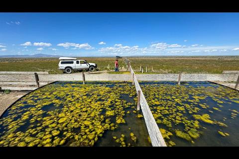 The rest of the day was spent doing a 110-mile zigzag over hill and dale, making our way through Diamond Valley, Paddle Meadows, and Leppy Springs before finding Mickey Hot Spring. Dropping off the Steen Mountains, the Alvord dry lake stretched southward.