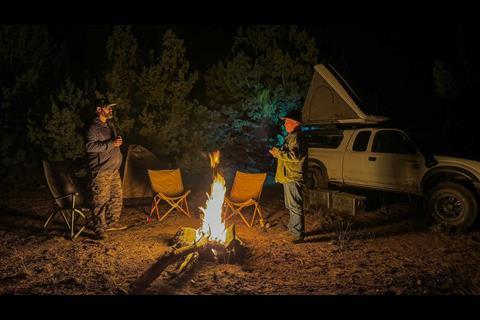 As the sun neared the horizon, we set up camp next to a hunting blind, cracked a few Pacificos, and took in a Kodachrome sunset as a thunderstorm crossed a distant range.