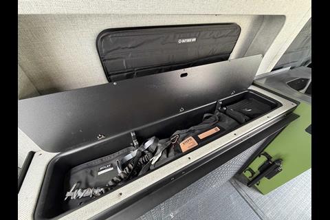 Cooling during the day relied on ventilation and window covers. This 2025 model did not have the newer undermounted air-conditioning system that will be standard on 2026 builds, but the roof fan and airflow management kept the interior usable even in the desert heat.