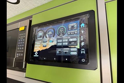 Power distribution, lighting both inside and out, the water pump, heater, and even the powered awning can all be controlled and monitored at your fingertips.